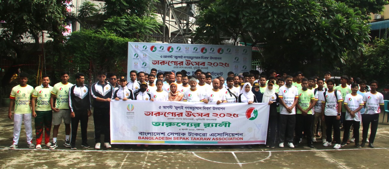 তারুণ্যের উৎসবে র্যালি ও জুলাই গনঅভ্যুত্থান দিবস উপলক্ষ্যে টুর্নামেন্টের আয়োজন করে বাংলাদেশ সেপাক টাকরো অ্যাসোসিয়েশন। আজ মঙ্গলবার সকাল ৭ ঘটিকায় ক্রীড়া সংগঠক ও খেলোয়াড়দের নিয়ে এক বর্ণাঢ্য র্যালির মাধ্যমে দিনের কার্যক্রম শুরু হয়।